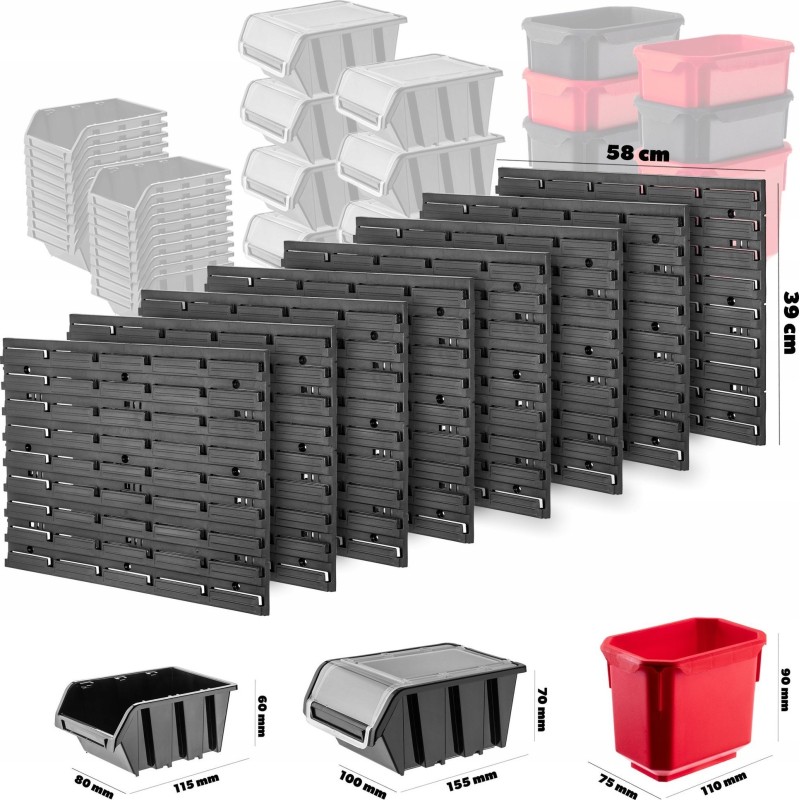 WYGODNE - kuwety magazynowe, półki i uchwyty wystarczy umieścić na tablicy narzędziowej, a następnie wypełnić je akcesoriami. Można ułożyć je w dowolnej konfiguracji.
