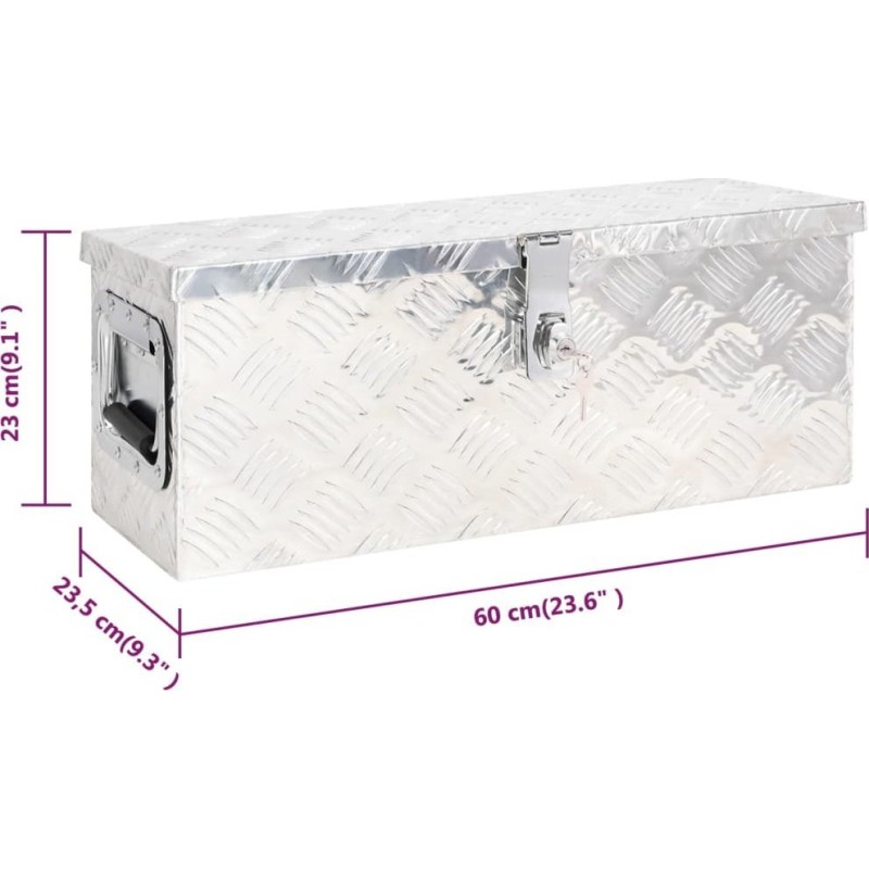 vidaXL Skrzynka do przechowywania, srebrna, 60x23,5x23 cm, aluminium