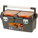 Skrzynka na narzędzia ma pojemność 37 litrów i posiada wyjmowane pojemniki na drobne przedmioty w pokrywie i wewnętrzną półkę na narzędzia. Skrzynia jest odporna na niskie i wysokie temperatury w zakresie -20 ° C / 50 ° C, może więc służyć w ekstremalnych warunkach. Aluminiowy uchwyt o pełnej długości ułatwia transport dużej ilości narzędzi. Skrzynka narzędziowa jest zamykana na kłódkę i posiada zatrzaski i okucia z galwanizowanego metalu.