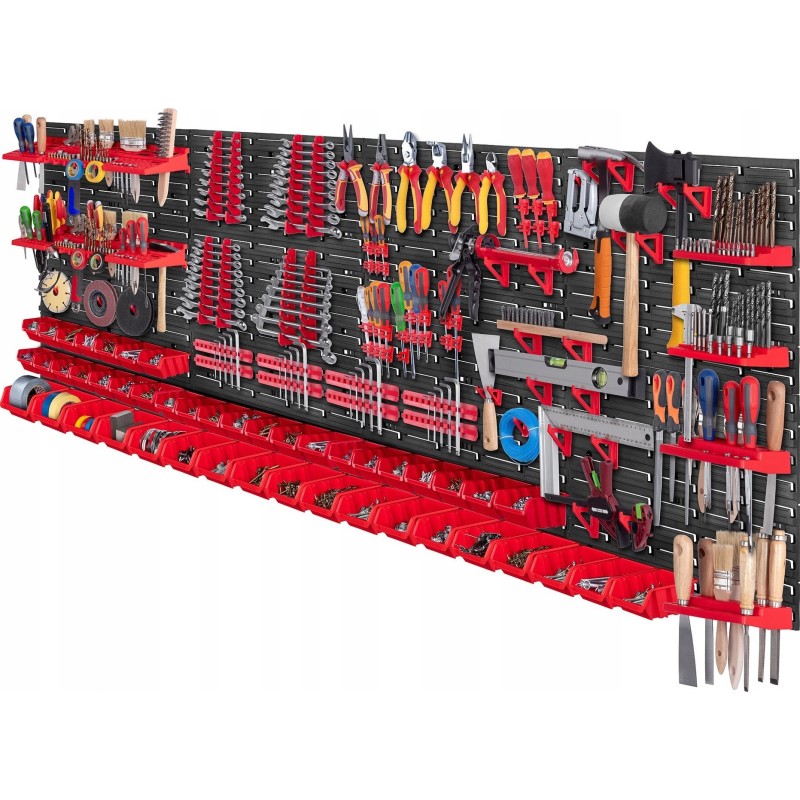 DOSKONAŁA ORGANIZACJA – duża tablica warsztatowa pozwoli Ci na praktyczne i wygodne układanie wszelkich narzędzi. Przydatne akcesoria dołączone w zestawie zapewnią bezpieczeństwo przechowywanym przedmiotom.