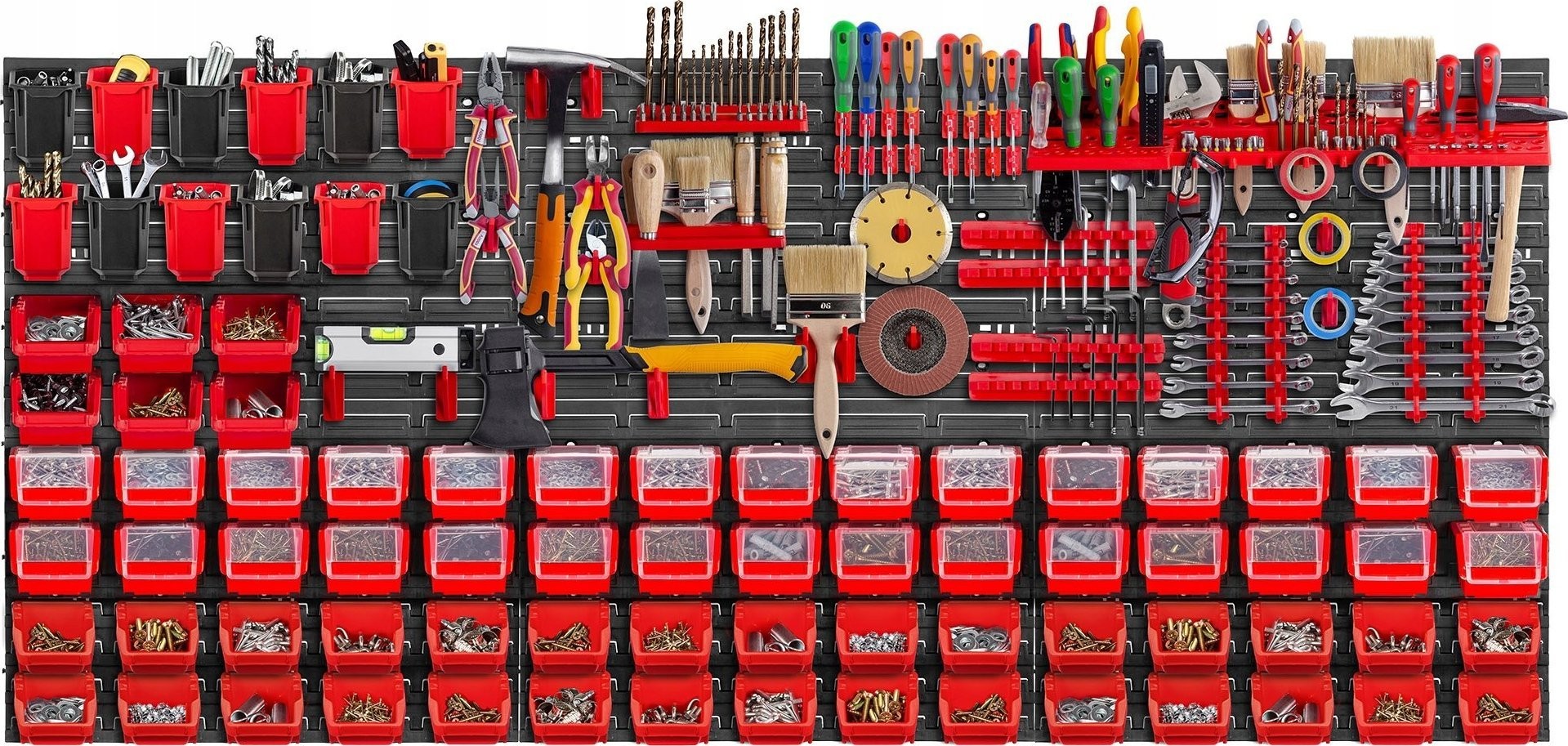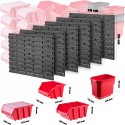 FUNKCJONALNE - kuwety warsztatowe pomieszczą naprawdę sporo elementów drobnicowych i niewielkich narzędzi. Natomiast na uchwytach i półkach powiesisz śrubokręty, klucze, młotki i wiele innych akcesoriów, które chcesz mieć pod ręką.