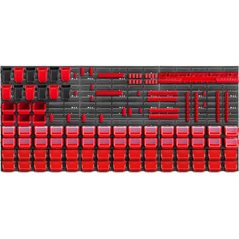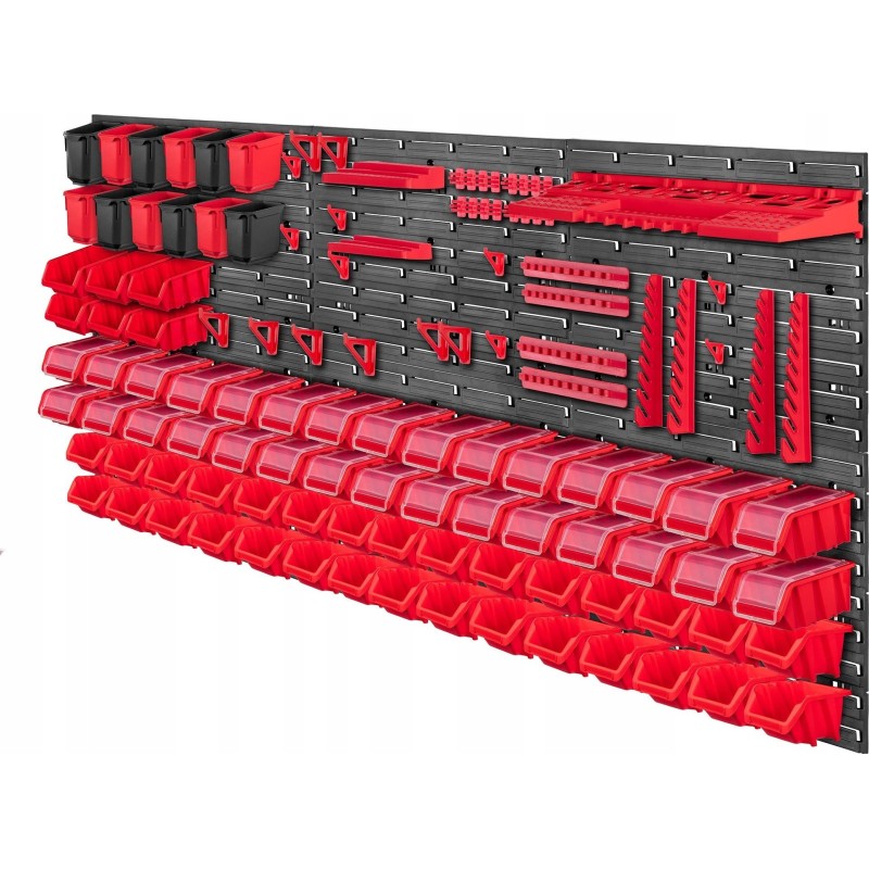 WYGODNE - kuwety magazynowe, półki i uchwyty wystarczy umieścić na tablicy narzędziowej, a następnie wypełnić je akcesoriami. Można ułożyć je w dowolnej konfiguracji.