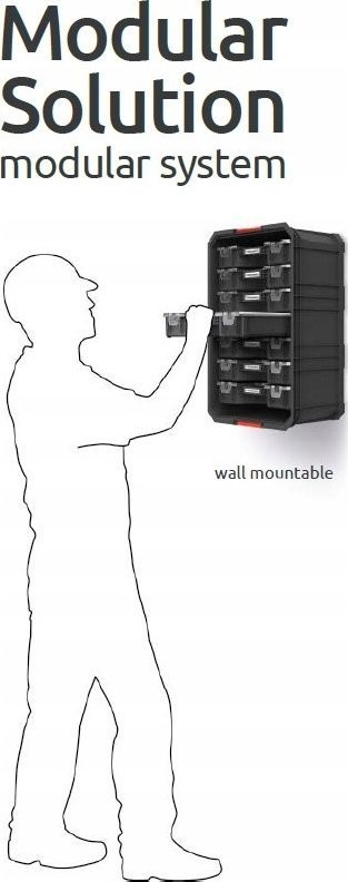 Skrzynia wyposażona została w konektory z metalowymi trzpieniami umożliwiającymi spinanie z pozostałymi elementami serii.