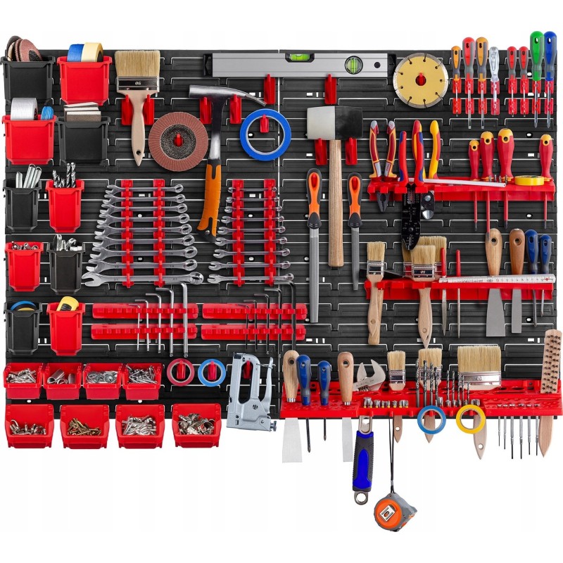 ŁATWY MONTAŻ - montaż tablicy narzędziowej jest stosunkowo prosty za sprawą równomiernie umiejscowionych otworów. Wystarczy, że przykręcisz tablicę do ściany za pomocą kołków montażowych i zawiesisz akcesoria, aby cieszyć się stabilnym organizerem.