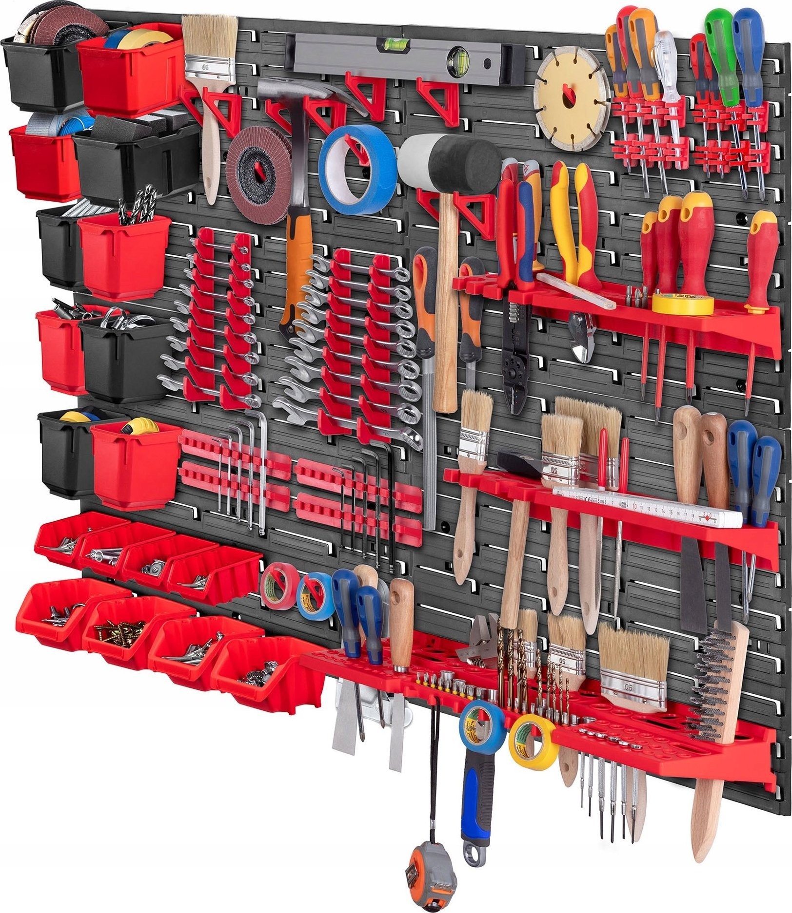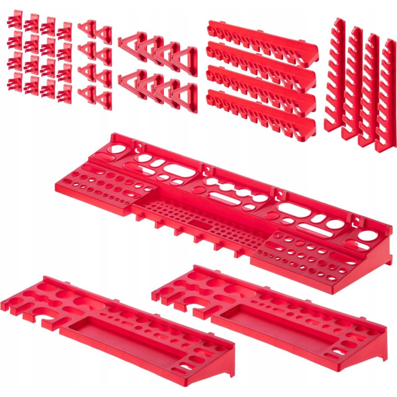 WYGODNE - półkę, kuwety i haki na narzędzia wystarczy umieścić na tablicy narzędziowej, a następnie wypełnić je akcesoriami. Można ułożyć je w dowolnej konfiguracji.