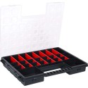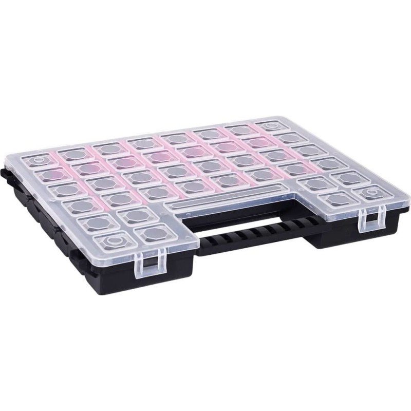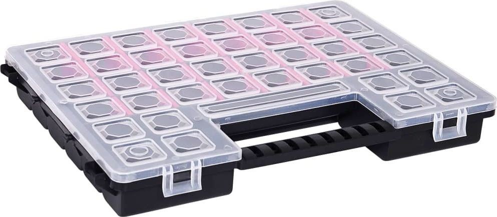 Praktyczny organizer narzędziowy to znakomita propozycja dla osób, które doceniają porządek podczas majsterkowania i prac rękodzielniczych, a także dla profesjonalistów do ich miejsca pracy. Dzięki przezroczystej pokrywce możesz z łatwością rozpoznać i znaleźć śrubki, nakrętki, gwoździe i inne małe przedmioty. Dzięki przestawnym przegródkom organizer można podzielić na maksymalnie 27 skrytek, aby wszystkie drobiazgi znalazły swoje miejsce. Łatwy w obsłudze uchwyt pozwala na przenoszenie pudełka z zawartością.