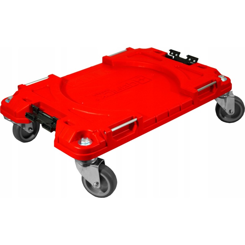 Qbrick System PRO Wysokiej jakości Platforma transportowa została wyposażona w cztery kółka obrotowe, dwa z hamulcem, oraz dwa bez. Łączy się z wszystkimi elementami systemu QBRICK SYSTEM PRO.