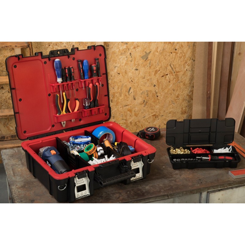 Tym samym wszystkie niezbędne akcesoria będziesz miał pod ręką - w warsztacie, garażu czy przy remoncie. Co więcej, szczelne zamknięcie w postaci zatrzasków zabezpieczy narzędzia przed rozsypaniem, a tym samym – obiciem i porysowaniem.