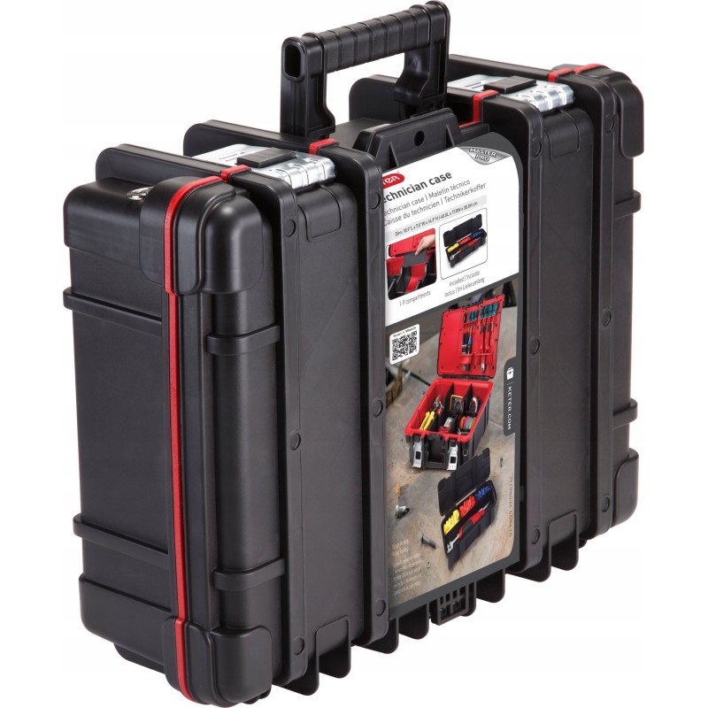 Nasza skrzynka narzędziowa jest wytrzymała, bo została wykonana z wysokiej jakości tworzywa. Materiał jest odporny na uderzenia mechaniczne i odkształcenia, dzięki czemu walizka na dłużej zachowa swoje właściwości. Zatrzaski wykonano z metalu.