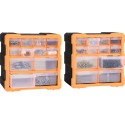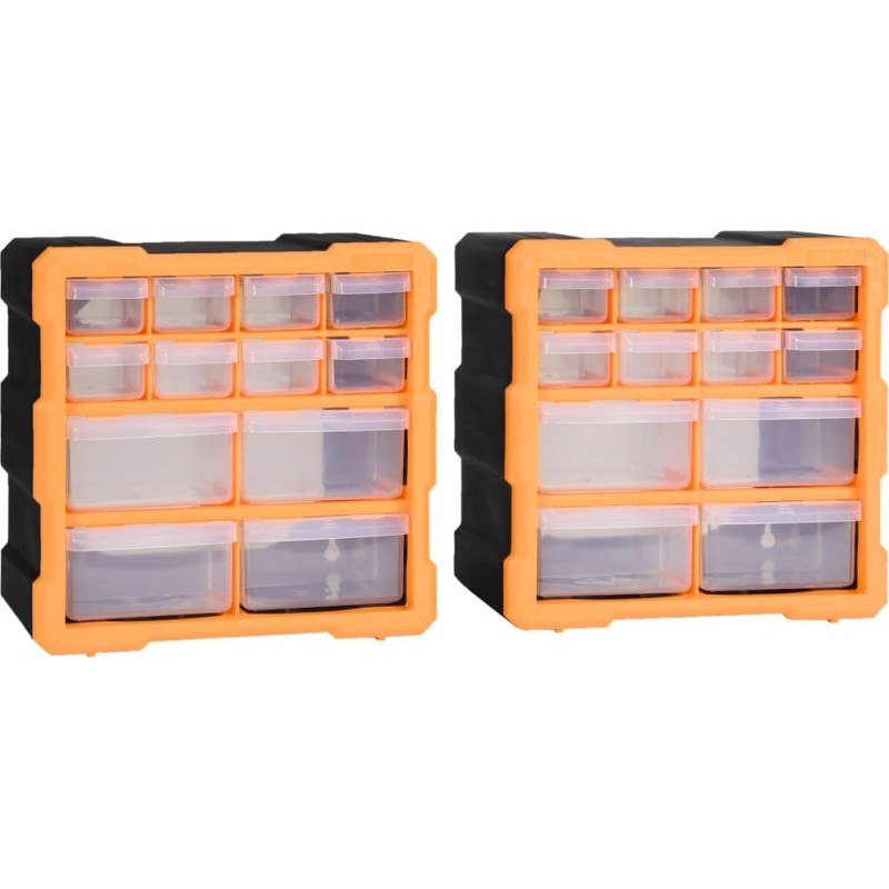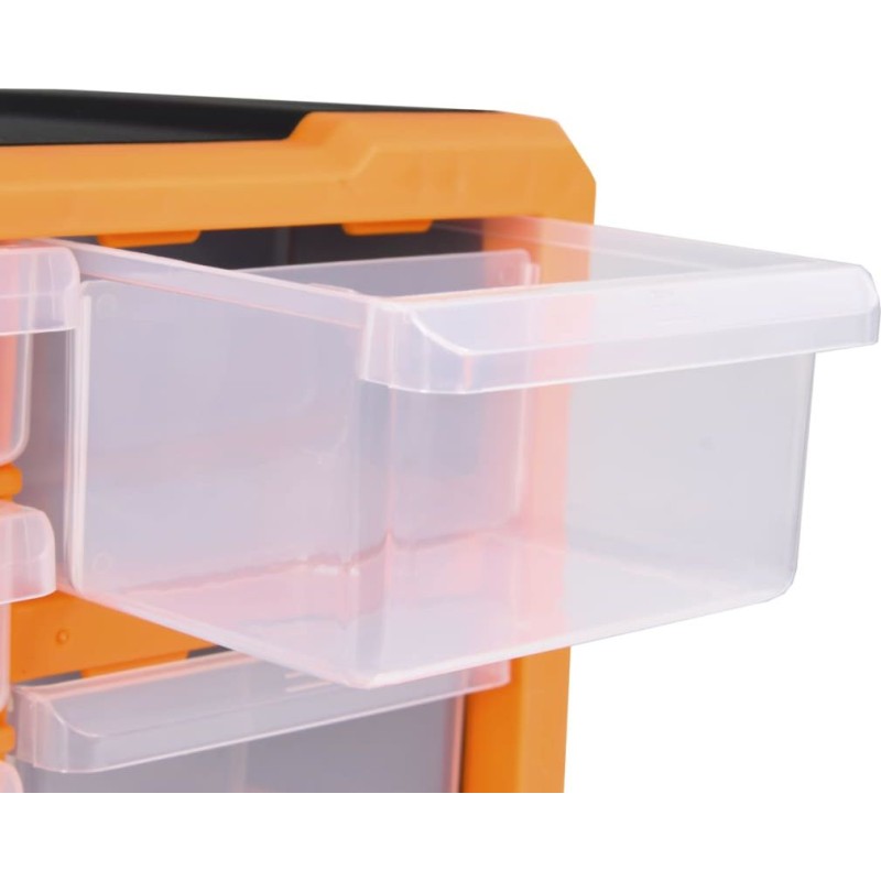 Każdy organizer do przechowywania zawiera 8 małych i 4 średnie szuflady, aby zaspokoić różne potrzeby. Dzięki niemu Twoje narzędzia ręczne i akcesoria, takie jak złączki, są uporządkowane i dostępne. Szafka narzędziowa wykonana jest z odpornego na uderzenia tworzywa sztucznego, które jest trwałe i stabilne. Szuflady z przezroczystego plastiku pozwalają szybko zidentyfikować zawartość. Pudełko jest idealne do przechowywania nakrętek, śrub, wkrętów, gwoździ, mocowań i komponentów.