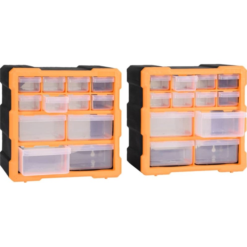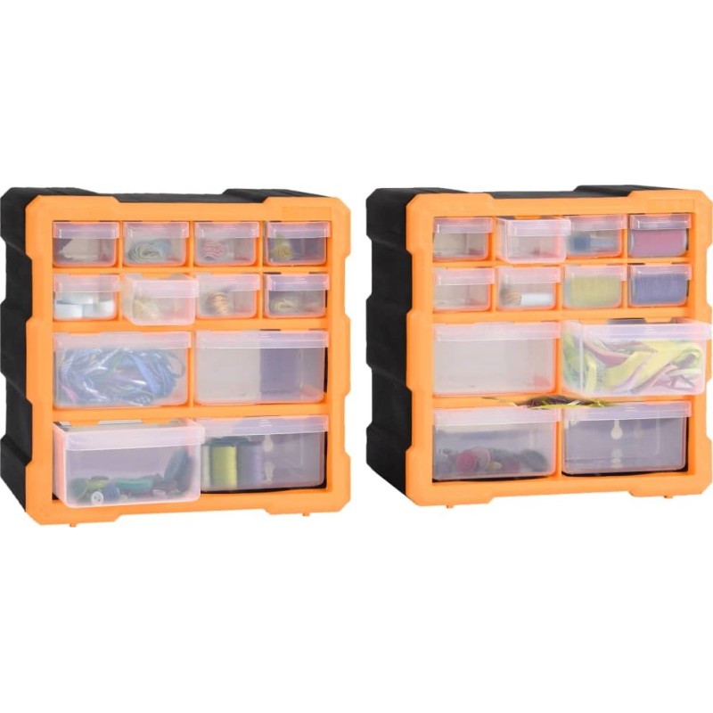 Te niezbędne organizery z łącznie 24 szufladami są przeznaczone do przechowywania szerokiej gamy przedmiotów w sposób uporządkowany. Mogą być również używane jako pudełko na przybory do szycia lub akcesoria kosmetyczne.