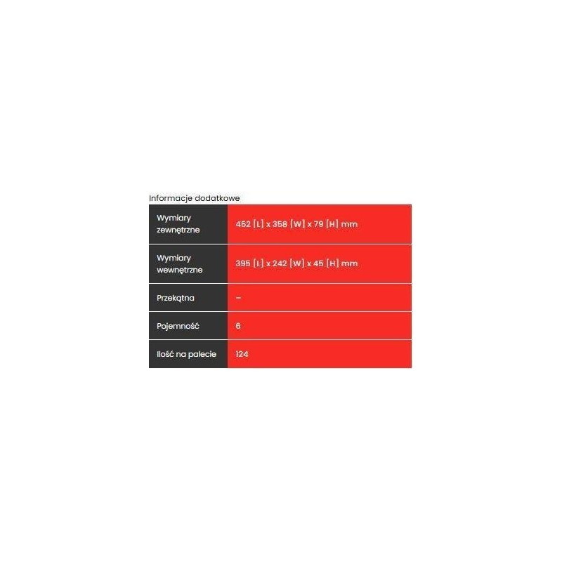- Wymiary zewnętrzne (długość x szerokość x wysokość): 450x358x80mm