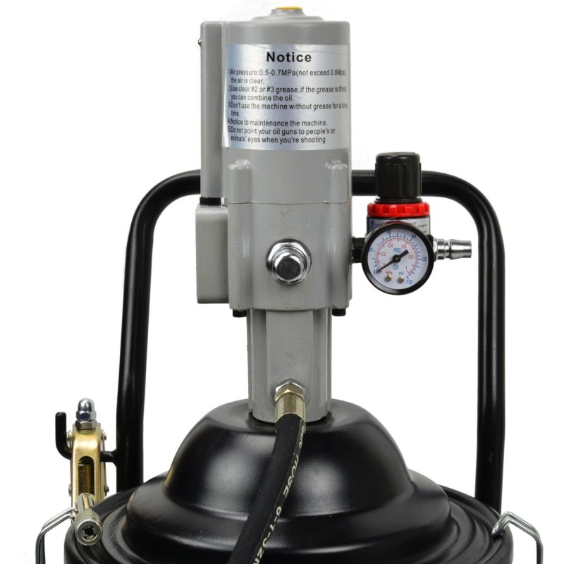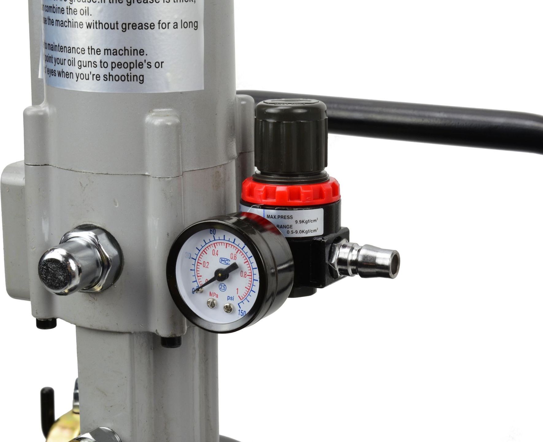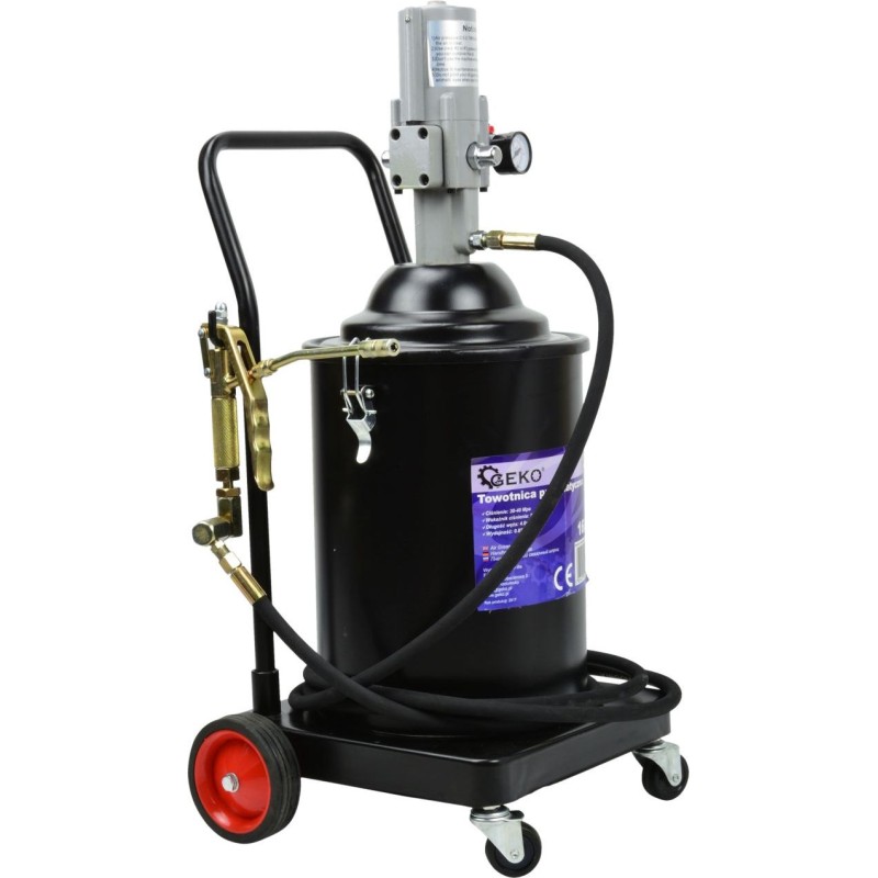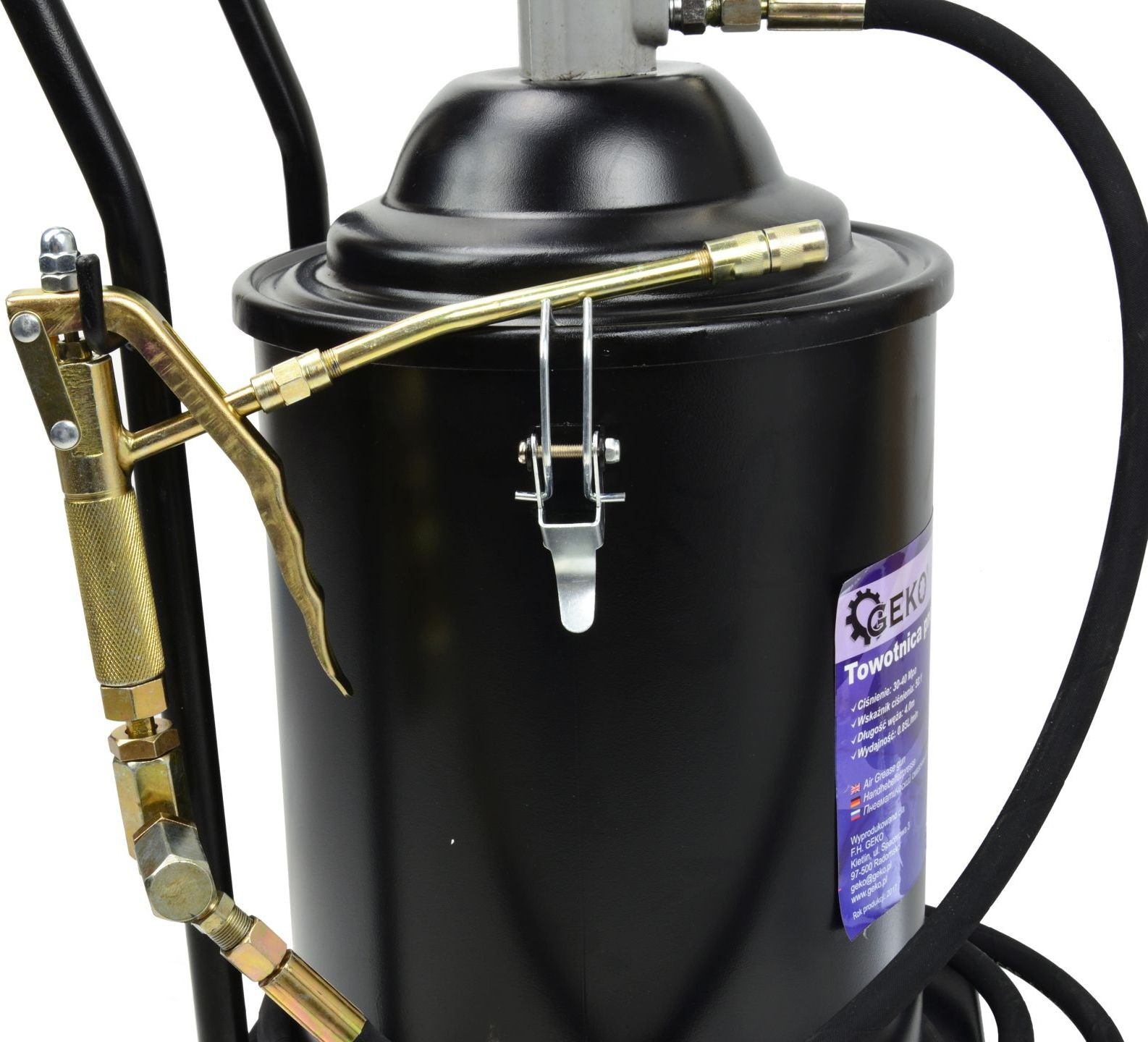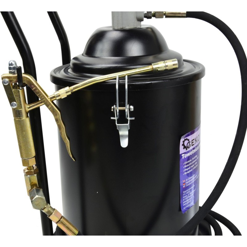 Towotnica pneumatyczna stacjonarna 16L Smarownica pneumatyczna zaprojektowana do pompowania smarów pod dużym ciśnieniem. W zestawie pompa smarowa, wąż smarowy 4m oraz pistolet smarowy obrotowy 360°.
