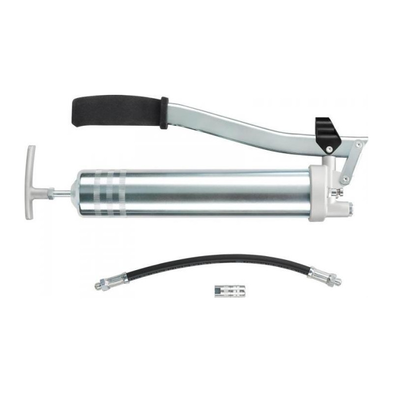 Smarownica ręczna, dźwigniowa PRELIxx PROWykonanie: DIN 1283. Ze stali, ocynkowana, do użytku z dużymi obciążeniami, grubość ścianek 1 mm. Uruchomienie tłoka uchwytem “T”. Kołnierz ze szczelnym osadzeniem w przypadku stosowania smaru stałego luzem lub naboju. Tłok pompy z wysoką dokładnością dopasowania do cylindra (bez smarowania pozornego). Nadaje się do nabojów smarowych 400 g zgodne z normą DIN 1284, urządzenia do napełniania smarem lub smaru luzem. Zestaw zawiera wąż pancerny M10 x 1, 11 x 300 mm i nasadkę, 4 BA, M10 x 1....