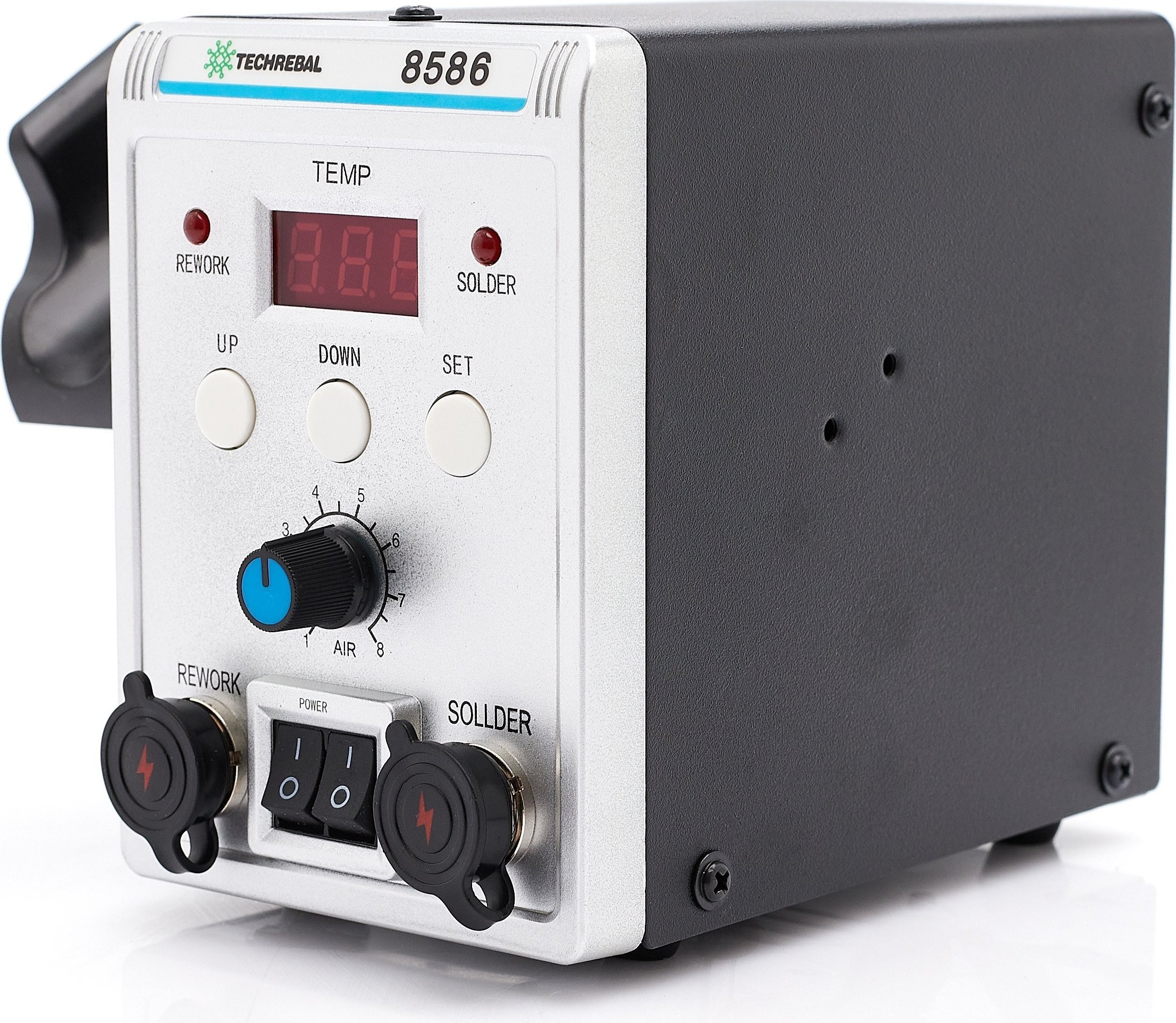 Stacja lutownicza 2w1 Techrebal HotAir + Kolbowa 8586 760W z zestawem elementów do spawania plastiku