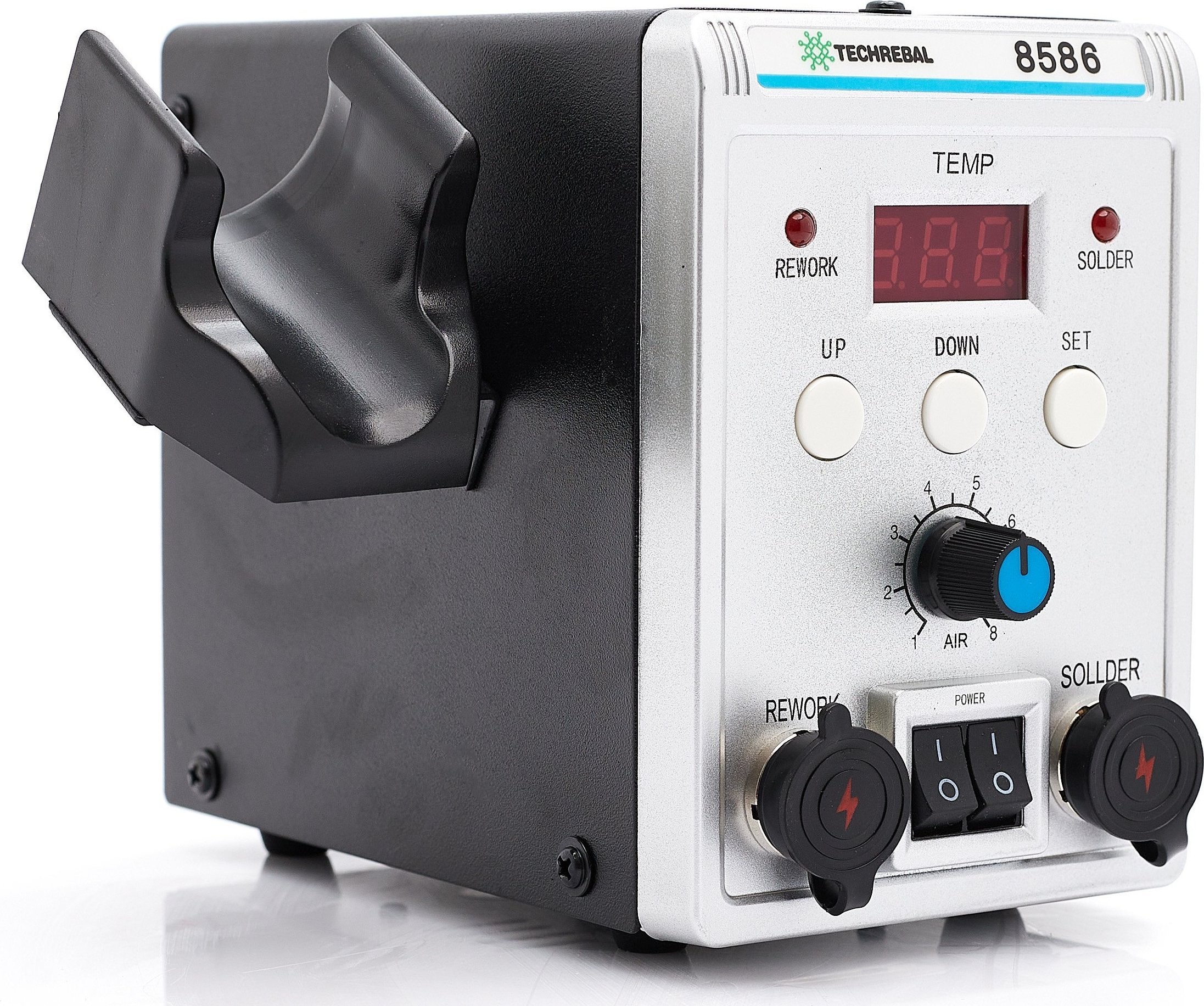 Stacja lutownicza 2w1 Techrebal HotAir + Kolbowa 8586 760W z zestawem elementów do spawania plastiku