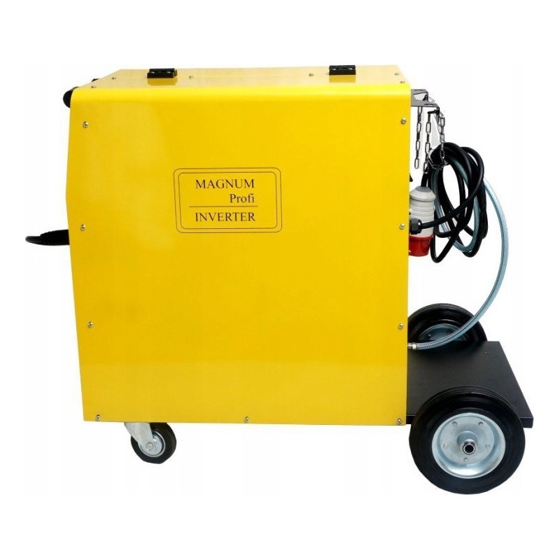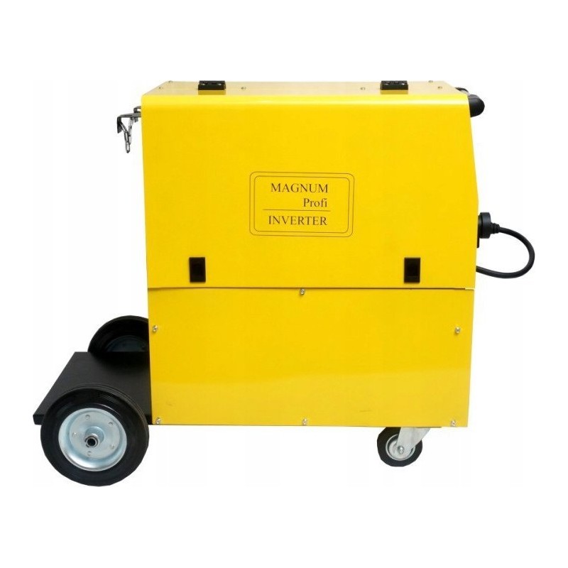 Urządzenie MAGNUM MIG 330w MMA IGBT to profesjonalny półautomat spawalniczy zasilany z sieci trójfazowej 400V o maksymalnym prądzie spawania 330A. Urządzenie umożliwia spawanie łukowe topliwym drutem elektrodowym MIG/MAG, drutem samoosłonowym FCAW (należy zmienić biegunowość w spawarce: minus (-) na uchwycie spawalniczym, plus (+) na masie!), oraz metodą MMA z wykorzystaniem elektrod otulonych (rutylowych, zasadowych, kwaśnych).