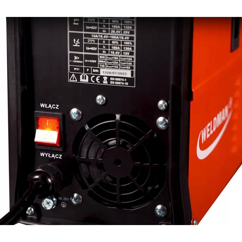 | Marka: WELDMAN| Metody spawania: MMA, FLUX, TIG DC LIFT | Zasilanie: 230V | Prąd spawania: 160A | Sprawność: 60% |