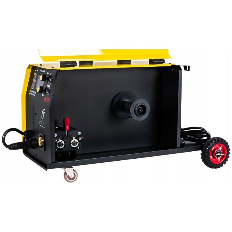 Urządzenie charakteryzuje się wysoką wydajnością oraz stabilnością pracy dzięki zastosowaniu technologii inwerterowej. Z profesjonalnym podajnikiem drutu oraz kołami transportowymi, spawarka jest łatwa w użyciu i mobilna, co czyni ją idealnym narzędziem zarówno do warsztatów, jak i do prac domowych.