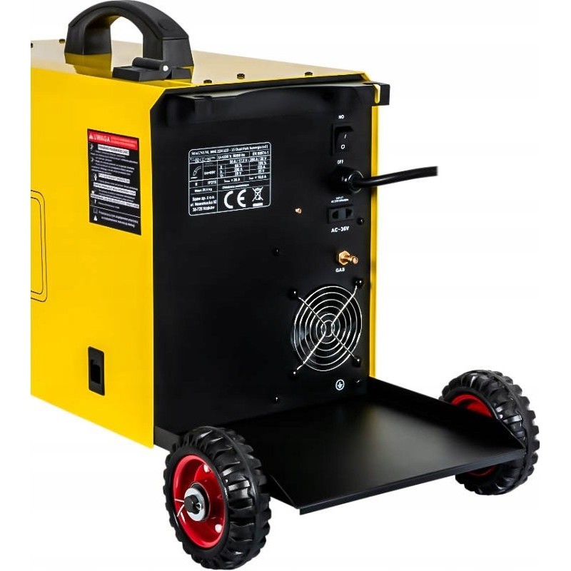 - Dodatkowe cechy: koła transportowe, maska spawalnicza w zestawie, płynna regulacja prądu spawania, uchwyt EURO, wyświetlacz LCD