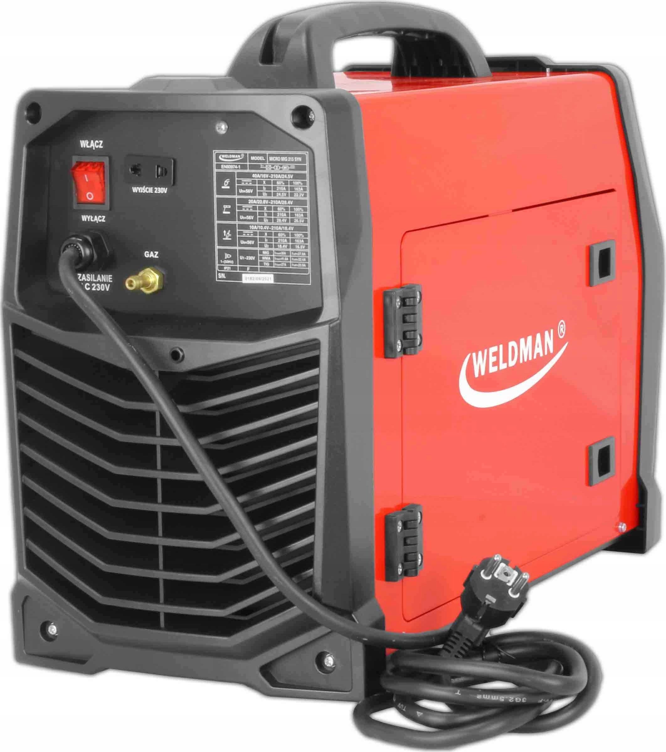 Marka: WELDMAN | Metody spawania: MIG/MAG, MMA, TIG LIFT | Zasilanie: 230V | Prąd spawania: 220A | Sprawność: 60%