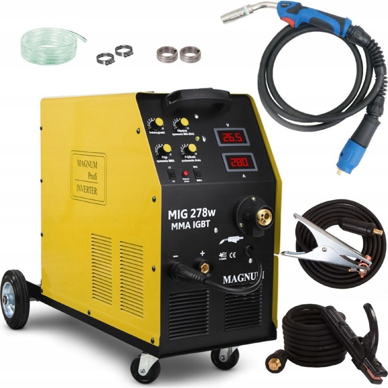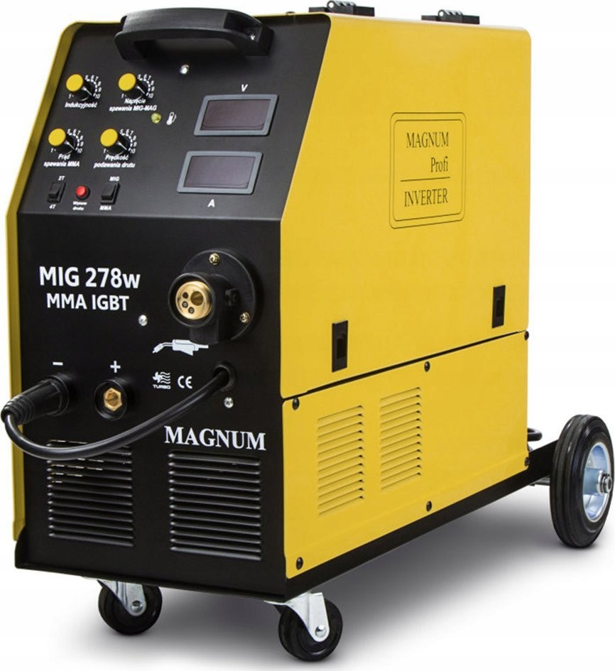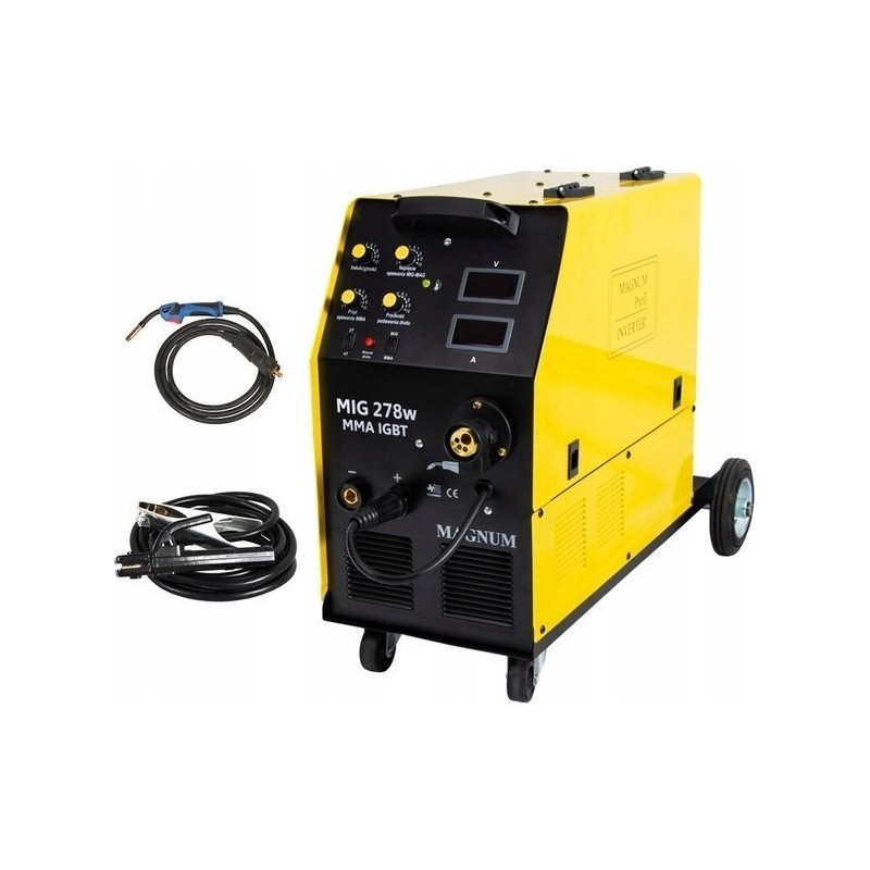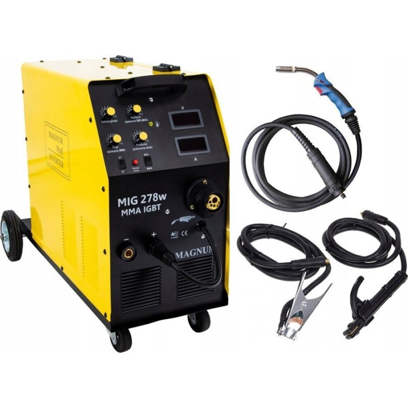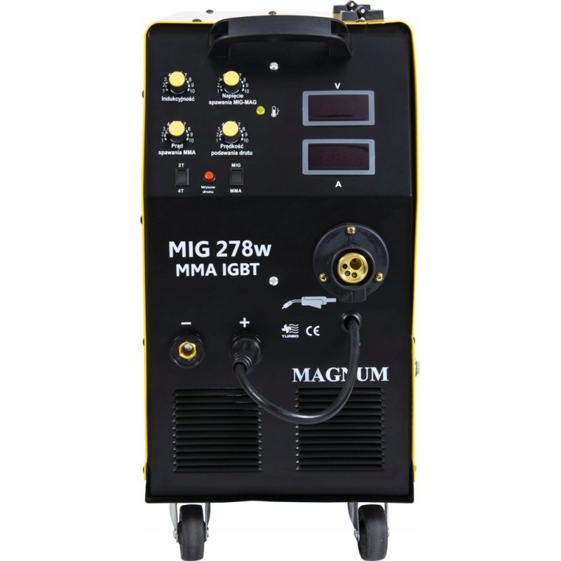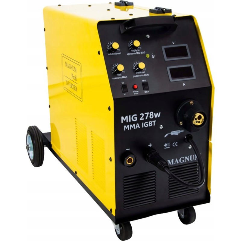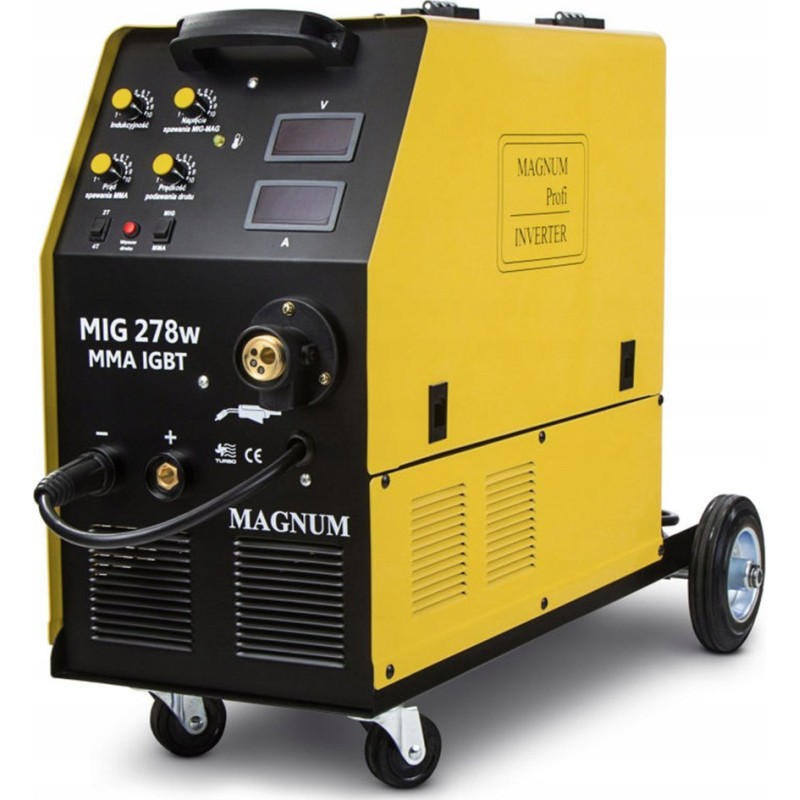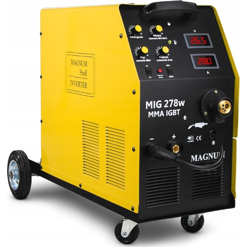 Urządzenie MIG 278w MMA IGBT, marki Magnum jest profesjonalnym półautomatem spawalniczym przeznaczonym do ręcznego, elektrycznego spawania stali niskowęglowej, niskostopowej (MAG), stali stopowych (MIG) oraz aluminium i jego stopów.
