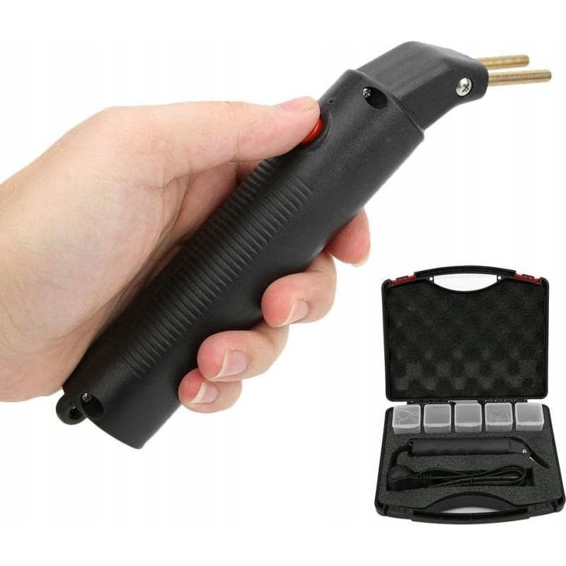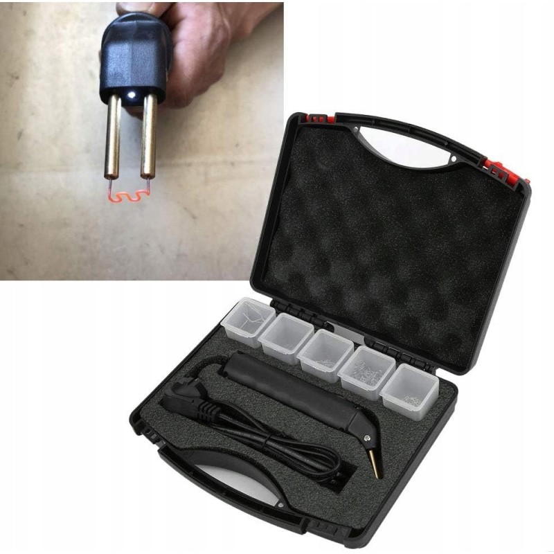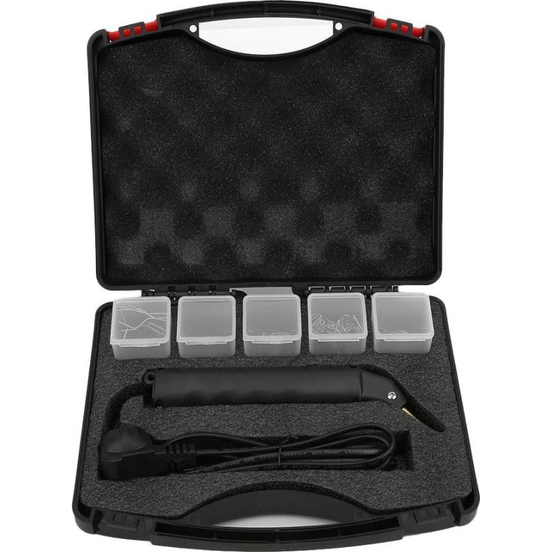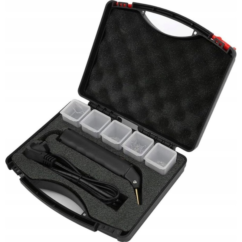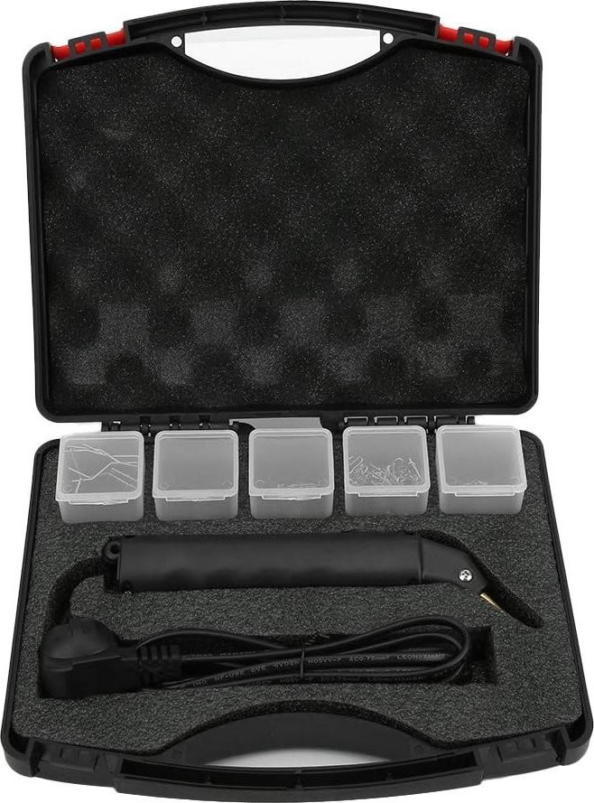 Czarny zszywacz do plastiku w walizce 100W + 205 zszywek