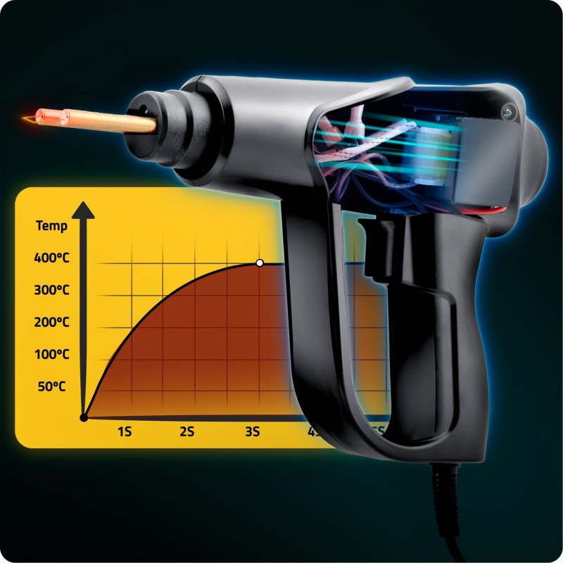 ◾ Tylko 3 sekundy i spawarka osiąga swoją maksymalną temperaturę — aż 400 ℃.
