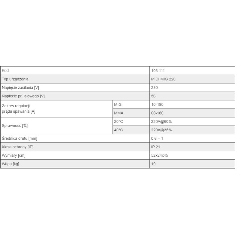 Półautomat spawalnicz nwertorowy MIDI MIG 220A 230V (103 111)