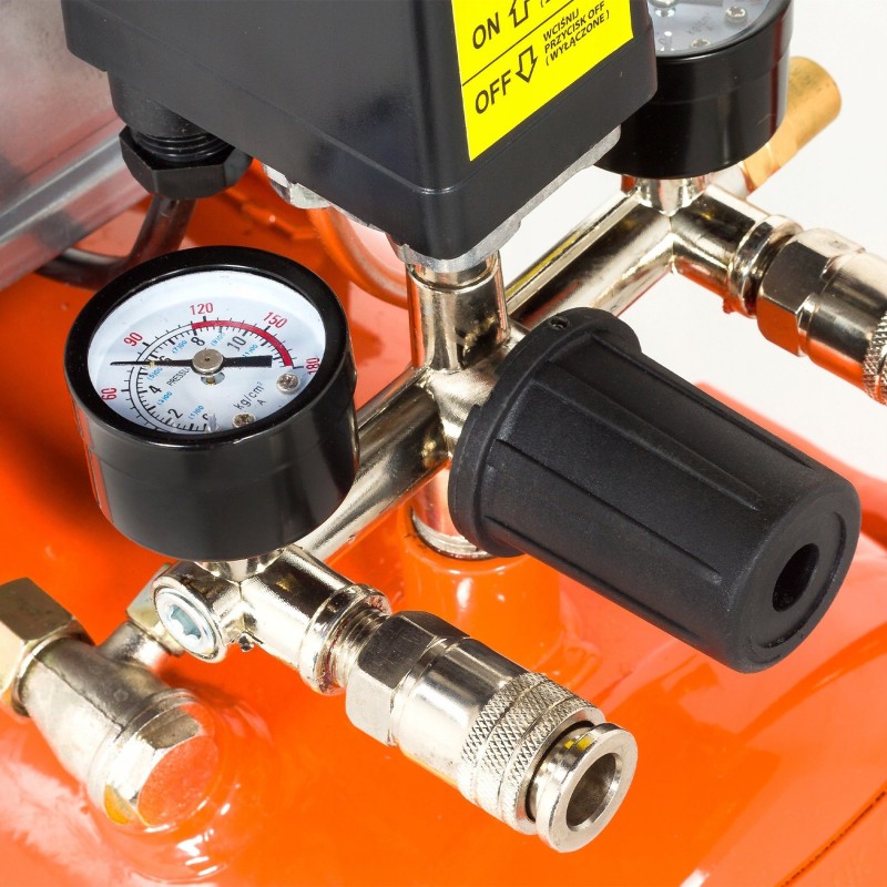 Ciśnienie maksymalne kompresora to 8 bar. Reduktor ciśnienia posiada precyzyjny mechanizm regulacji.