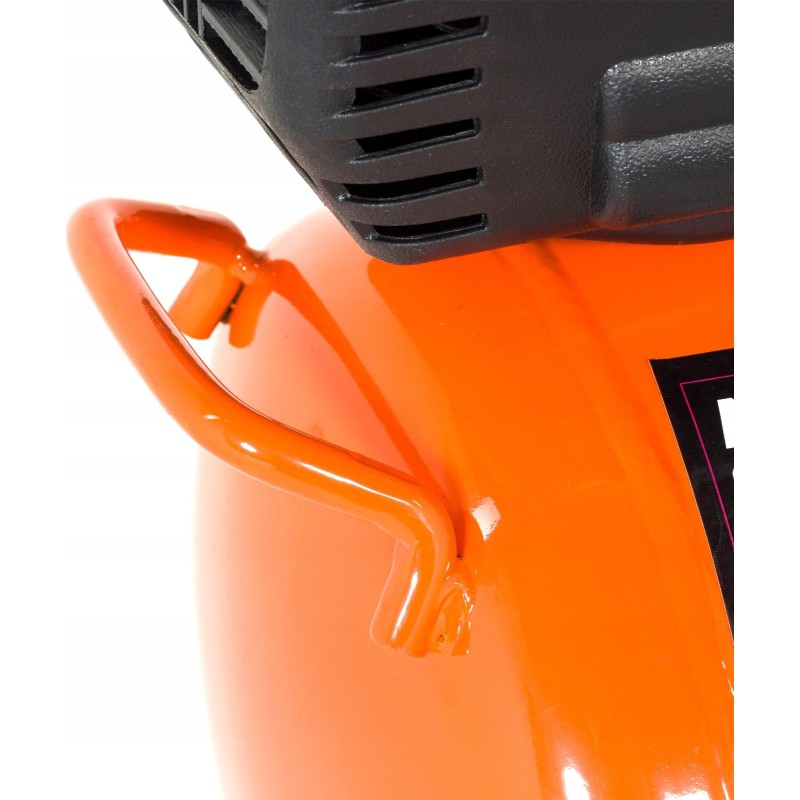 Wyposażony w wygodny uchwyt, gumowane koła jezdne umożliwiające łatwe przemieszanie oraz dodatkowy uchwyt przy zbiorniku umożliwiający podniesienie całego kompresora.