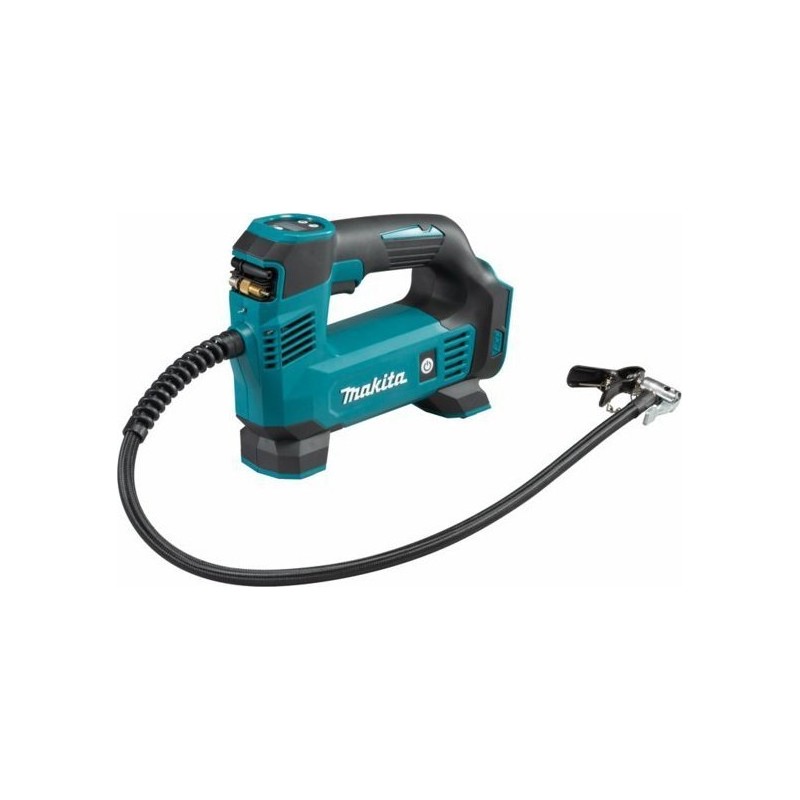 Dane techniczne:Napięcie zasilania:18 VTyp akumulatorów:Li-IonObsługiwane akumulatory:1,5 / 2,0 / 3,0 / 4,0 / 5,0 / 6,0 AhMaks. ciśnienie robocze:830 kPa / 121 PSI / 8,3 barWydatek powietrza:12 l/minWydajność (przy pompowaniu opon w rozm. 215/60R16):z akum. BL1860B: 11 sztCykl pracy:5 min wł. / 5 min wył.Długość węża:650 mmWymiary (D x S x W):266 x 80 x 174 mmWaga (EPTA):1,4 - 1,7 kgAkumulatorowy minikompresor zasilany akumulatorem 18 V przeznaczony do pompowania opon samochodowych oraz rowerowych, piłek, itp.Automatyczne wyłączenie urządzenia po osiągnięciu ciśnienia docelowegoZapamiętywanie ostatniego ciśnienia docelowego ustawionego przed wyłączeniem urządzeniaStabilne podstawki umożliwiają użycie jako "urządzenia stacjonarnego"Termostat zabezpieczający urządzenie przed przegrzaniemPodświetlany cyfrowy manometr zapewnia dobrą widzialność w ciemnych miejscachRóżne rodzaje końcówek do pompowania z możliwością przechowywania ich w obudowie urządzeniaDioda LED umożliwiająca pracę w ciemnych miejscachNie współpracuje z akumulatorami BL1811G, BL1813G, BL1815G (bez elektroniki) oraz akumulatorem BL1815 (18 V / 1,3 Ah)Dostarczany bez akumulatorów i ładowarki**Zdjęcie poglądowe....