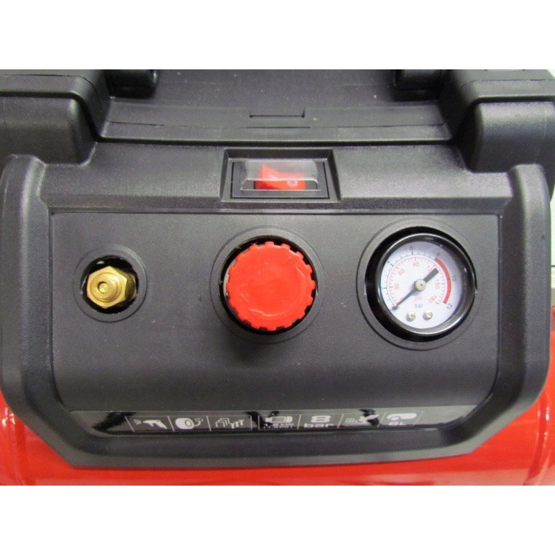 Urządzenie jest wyposażone w reduktor ciśnienia, który pozwala na regulację ciśnienia od 0 do 8 barów. Aktualne ciśnienie robocze jest widoczne na manometrze, umieszczonym obok przycisku włączającego sprężarkę i jest pobierane za pomocą szybkozłącza.