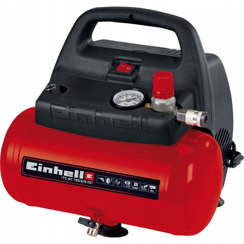 Sprężarka Einhell Einhell Compressor TC-AC 190/6/8 OF Set (red/black, 1,200 watts, tire inflator, compressed air hose)