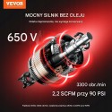 Nasza bezolejowy silnik o mocy 650 W napędza sprężarkę z prędkością 2800 obr./min, dostarczając 56 l/min przy 6,2 bara (90 PSI). Idealny do obsługi różnorodnych narzędzi pneumatycznych, takich jak gwoździarki, klucze udarowe, pistolety natryskowe czy śrubokręty pneumatyczne. Doskonale sprawdza się przy pompowaniu opon, naprawach samochodowych, malowaniu natryskowym oraz przy pracach stolarskich.