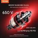 Ten przenośny kompresor wyposażony jest w silnik bezolejowy o mocy 1 KM (650 W), dostarczający wystarczającą moc do obsługi różnorodnych narzędzi pneumatycznych. Zapewnia odpowiednie wsparcie w aplikacjach takich jak gwoździowanie, malowanie i inne prace.