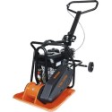 Z zagęszczarką wibracyjną V-HB 13000 wszystko zaczyna się naprawdę dziać. Beton, kamień, glina czy piasek nie stanowią żadnego problemu dla masywnego narzędzia pracy. Wręcz przeciwnie: jeśli zdecydujesz się na V-HB 13000, masz pod ręką silnego towarzysza, który zagęszcza glebę bez jej osłabiania. Zagęszczarka V-HB 13000 to opatentowane narzędzie, którego można używać do czystego zagęszczania żwiru, betonu i innych podłoży. Wibrator, jak często nazywana jest płyta wibracyjna, napędzany jest silnikiem czterosuwowym o mocy 4,2 kW. Zasilasz silnik benzyną. Wlewasz ją do 3,1-litrowego zbiornika benzyny, zanim zabierzesz się do pracy. Niezależnie od tego, czy pracujesz w ogrodzie, na podwórku czy na placu budowy: kiedy płyta wibracyjna naprawdę zaczyna działać, potrzebna jest siła mięśni Podczas pracy powstaje ciśnienie sprężania 1325 kg. Za jego pomocą można zagęszczać do głębokości 300 mm. Z wibratorem pracujesz na średnich powierzchniach. Pomogą Ci w tym wymiary płyty o długości 520 mm i szerokości 433 mm. Nawet po ułożeniu kostki V-HB 13000 tworzy równą powierzchnię. Poziom mocy akustycznej (Lwa) V-HB 13000 wynosi 106 dB (A). Wymiary płyty wibracyjnej umożliwiają szybki postęp pracy bez utraty niezbędnego nacisku zagęszczania.