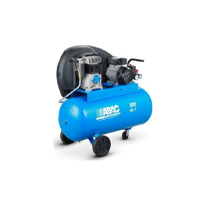 Wysokiej klasy kompresor jednostopniowy olejowy z linii A29 ABAC z butlą o pojemności 90 L, ciśnieniu maksymalnym 10 bar oraz wydajności na ssaniu 320 l/min.
