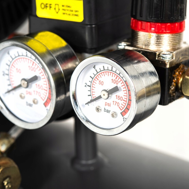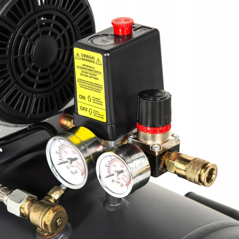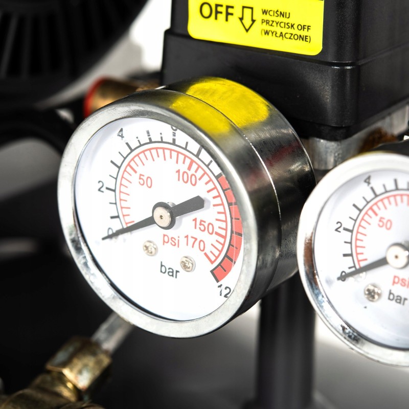 - łatwe do odczytu manometry wskazujące aktualne ciśnienie robocze oraz ciśnienie w zbiorniku