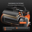 Zbiornik sprężarki wyposażony jest w duży wentylator chłodzący oraz automatyczną ochronę przed przegrzaniem, co zapobiega uszkodzeniom. Dodatkowo, gdy prąd lub ciśnienie przekroczy dopuszczalne wartości, sprężarka automatycznie wyłączy się lub zwolni ciśnienie.