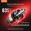 Ta przenośna sprężarka jest wyposażona w bezolejowy silnik o mocy 1,15 KM (860 W), dostarczając wystarczającą moc do obsługi różnych narzędzi pneumatycznych. Zapewnia odpowiednie wsparcie w aplikacjach takich jak gwoździowanie, malowanie i inne prace.