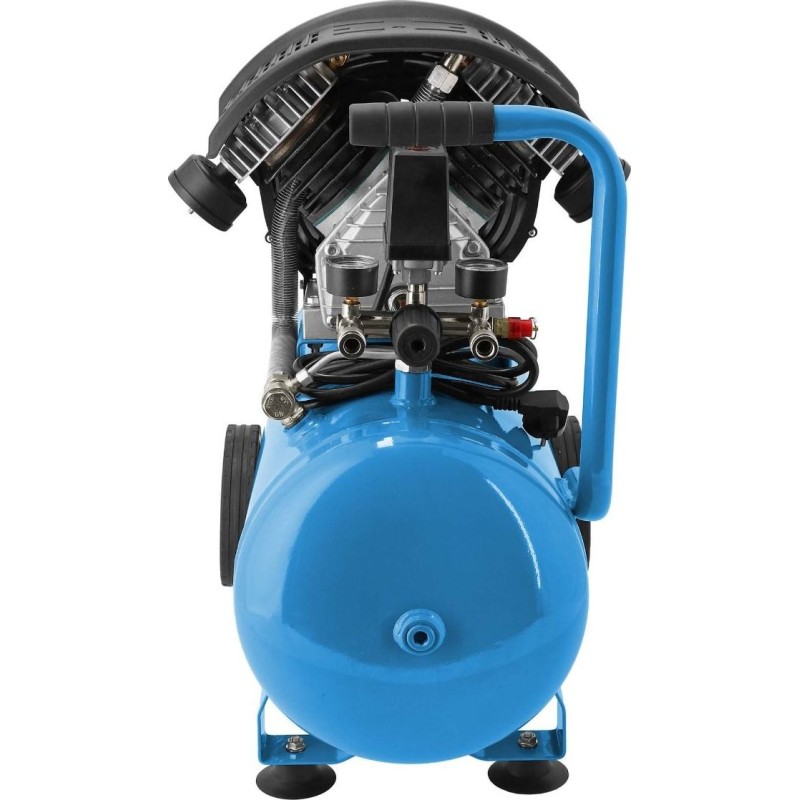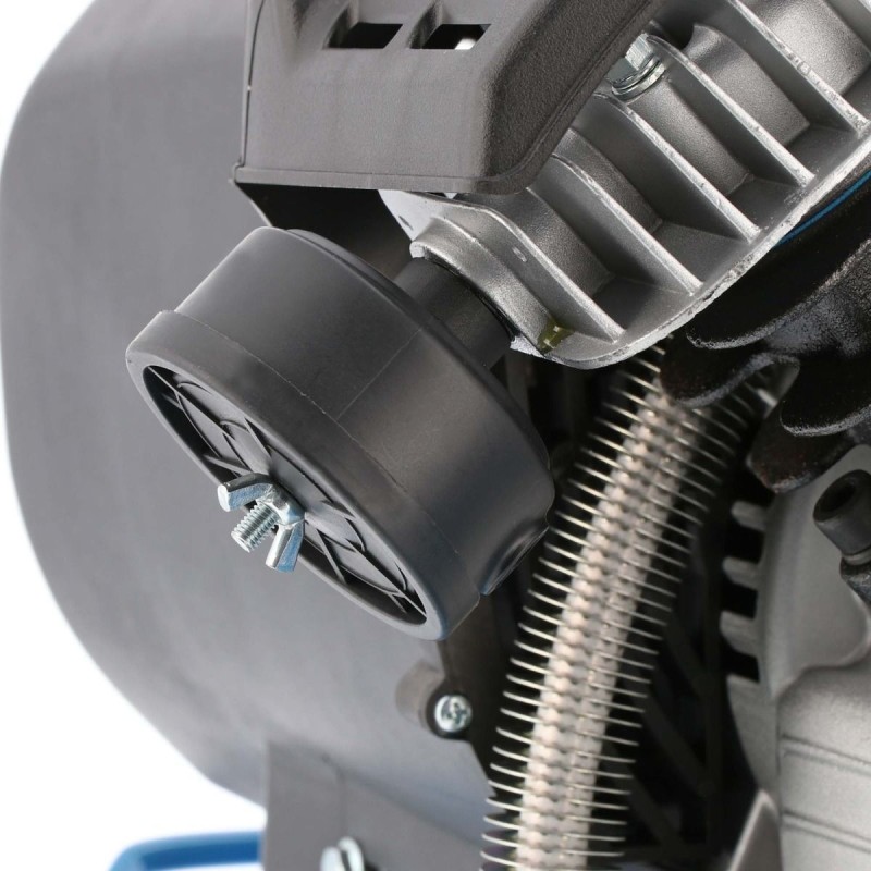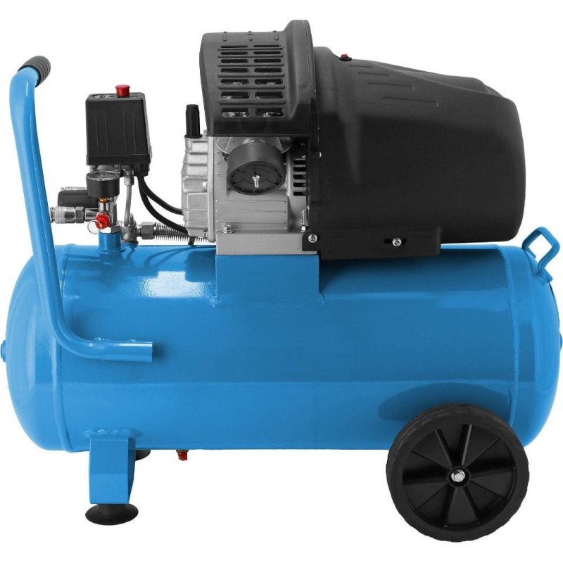 Kompresor tłokowy HL425-50 Airpress 36843 znajdzie zastosowanie przy pracach wymagających dużego zapotrzebowania na sprężone powietrze. Posiada duży zbiornik o pojemności 50l i cechuje się wysoką wydajnością na wyjściu kształtującą się na poziomie 317l/min. Kompresor wyposażono w reduktor, włącznik ciśnieniowy i dwa szybkozłącza 1/4". Posiada także 2 filtry zassawne, zawór zwrotny, zawór bezpieczeństwa i zawór spustu kondensatu. Ponadto sprężarkę zaopatrzono w oczko poziomu oleju, korek oleju, śrubę spustową i w zabezpieczenie termiczne chroniące przed uszkodzeniem. Dzięki uchwytowi i kołom, transport kompresora nie sprawia problemów. Atutem są także gumowe podstawy, które chronią przed zarysowaniami podłoża, na którym jest ustawiona sprężarka.
