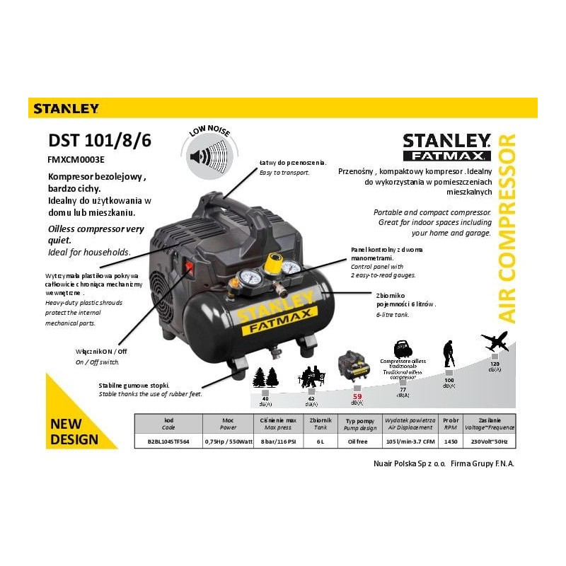 Stanley Fatmax - Sprężarka bezolejowa 8 bar: Cicha i wydajna praca w Twoim domu