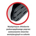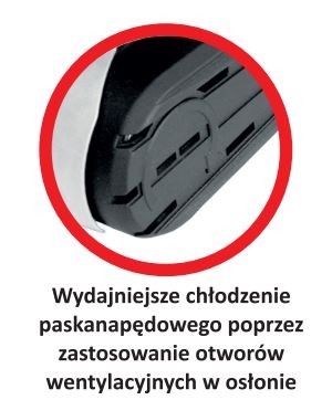 - Dodatkowo posiada aluminiową podstawę i otwory wentylacyjne w osłonie co daje wydajniejsze chłodzenie paska napędowego