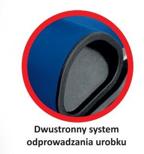 - Dwustronny system odprowadzania urobku daje wszechstronność stosowania, a precyzyjna regulacja głębokości strugana pozwala na dokładne wykonanie elementu