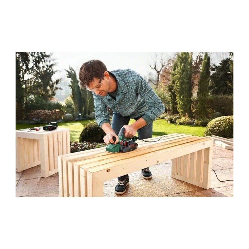 Bosch PHO 2000. Kolor produktu: Czarny, Zielony. Prędkość biegu jałowego: 19500 RPM, Głębokość strugania (maks.): 2 mm, Maksymalna szerokość strugania: 8,2 cm. Źródło zasilania: Prąd przemienny, Moc pobierana: 680 W, Moc rzeczywista: 380 W. Waga produktu: 2,4 kg