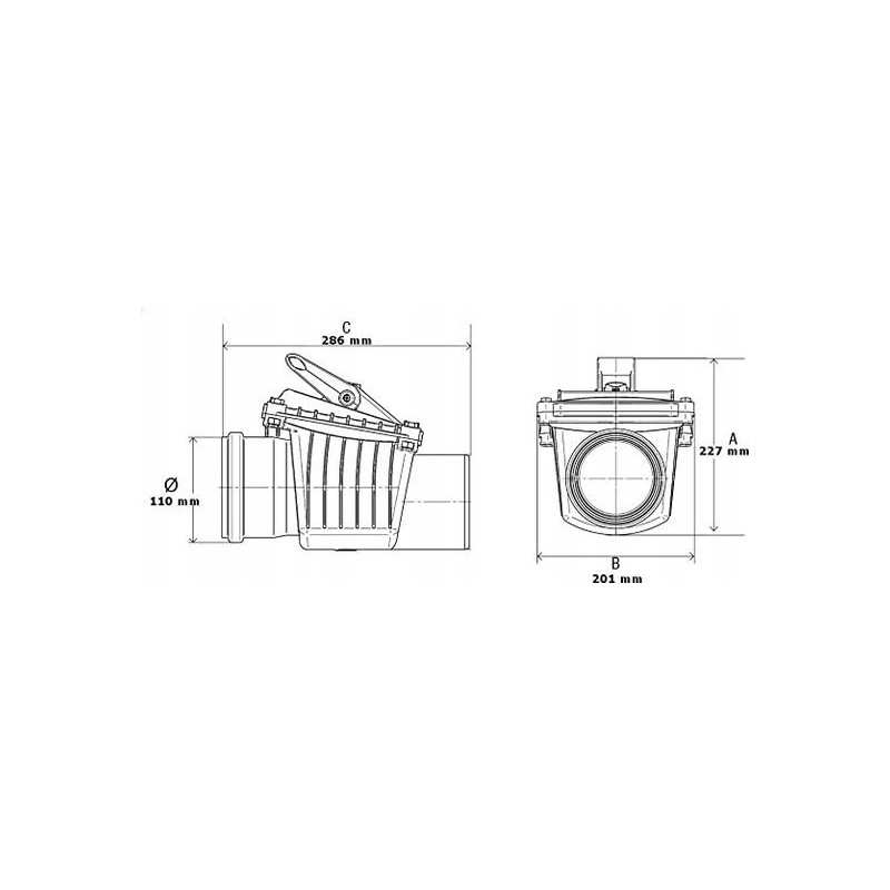 - Rozmiar: Ø =110 mm. Średnica przyłącza (mm): Ø 110 / DN 110