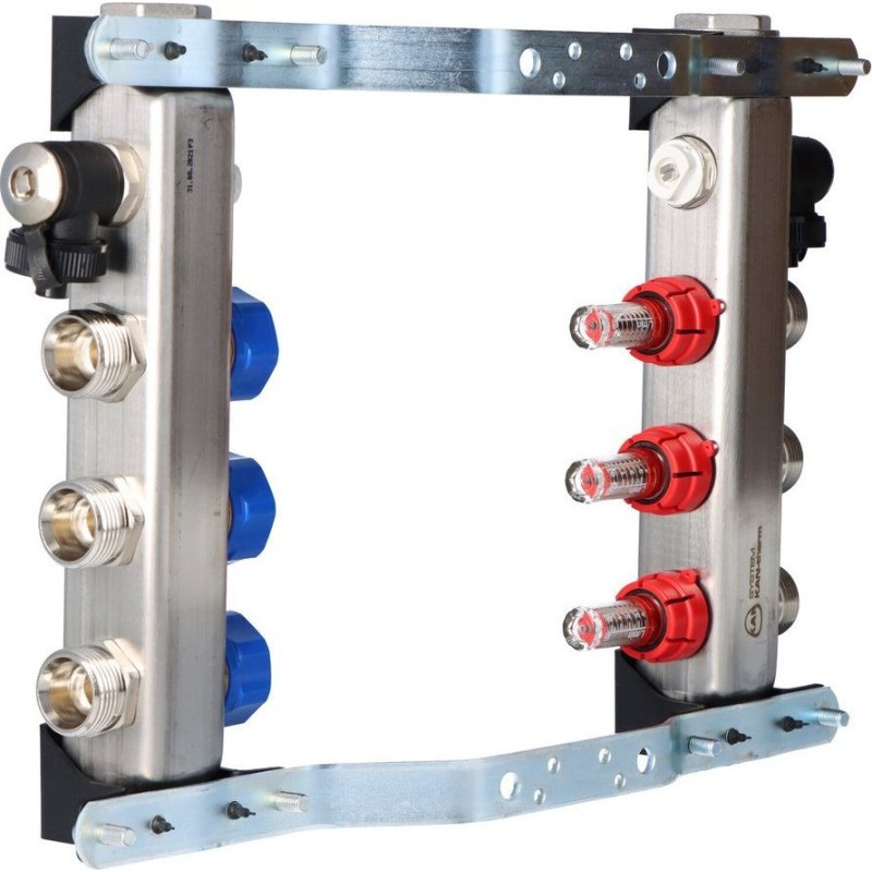 Rozdzielacz InoxFlow z zaworami do siłowników i przepływomierzami (seria UFST MAX) - 3 obwody