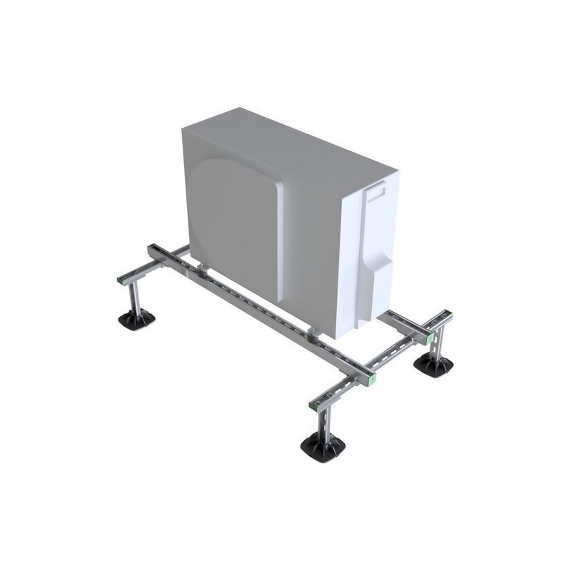 Stelaż do samodzielnego montażu, dedykowany do lekkich urządzeń typu pompa ciepła, ustawionych na gruncie.Zestaw składa się z: 4szt. stopy BIS Yeti® 130 wraz z matą antypoślizgową, 2szt.odpowiednio przyciętej szyny montażowej BIS RapidStrut® 41x41 1,2m (BUP1000), 2szt odpowiednio przyciętej szyny montażowej BIS RapidStrut® 41x41 0.75 m, 4szt konsol BIS RapidStrut konsola ścienna (BUP1000), 4 szt amortyzatorów drgań. ■ kompletny zestaw do ustawiania urządzeń (wszystkie łączniki, zaślepki i śruby znajdują się w zestawie)■ odpowiedni dla najczęściej stosowanych jednostek klimatyzacyjnych i wentylacyjnych■ anty-poślizgowa mata izolująca zapewniająca również izolację wibroakustyczną w komplecie■ zdefiniowana nośność zestawu (max. 2500 N), nie ma potrzeby wykonywania dodatkowych obliczeń■ stopy wykonane z WPC, kompozytu tworzywa sztucznego i włókien drewna■ elementy wykonane z tworzywa sztucznego pochodzą w 100% z recyklingu■ stopy odporne na UV zgodnie z normą PN-EN ISO 16474-3:2014-02 - certyfikowana przez ITB oraz na działanie środków chemicznych■ stopy zapewniają izolację dźwiękową■ produkt jest elementem systemu BIS UltraProtect® 1000■ odpowiednie także do zastosowań na zewnątrz budynków■ odporność powierzchni min. 1000 godzin w teście mgły solnej (max 5% czerwonej rdzy) zgodnie z ISO 9227