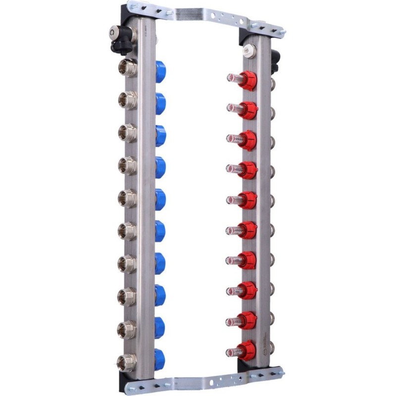 Rozdzielacz InoxFlow z zaworami do siłowników i przepływomierzami (seria UFST MAX) - 10 obwodów